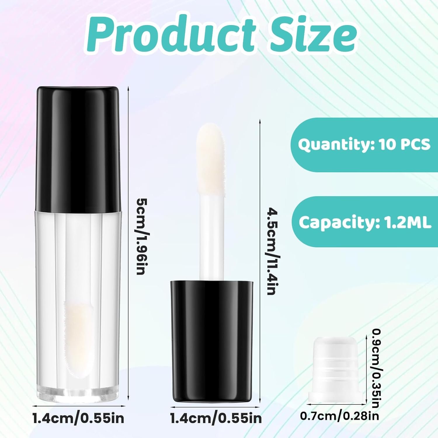 10 Pcs Empty Lip Gloss Tubes with Wand, Clear Plastic Lip Gloss Container 1.2 ml Mini Refillable Cosmetic Containers Bottles Lips Balm Bottle for Lipstick Samples DIY Makeup Lipgloss Making Kit