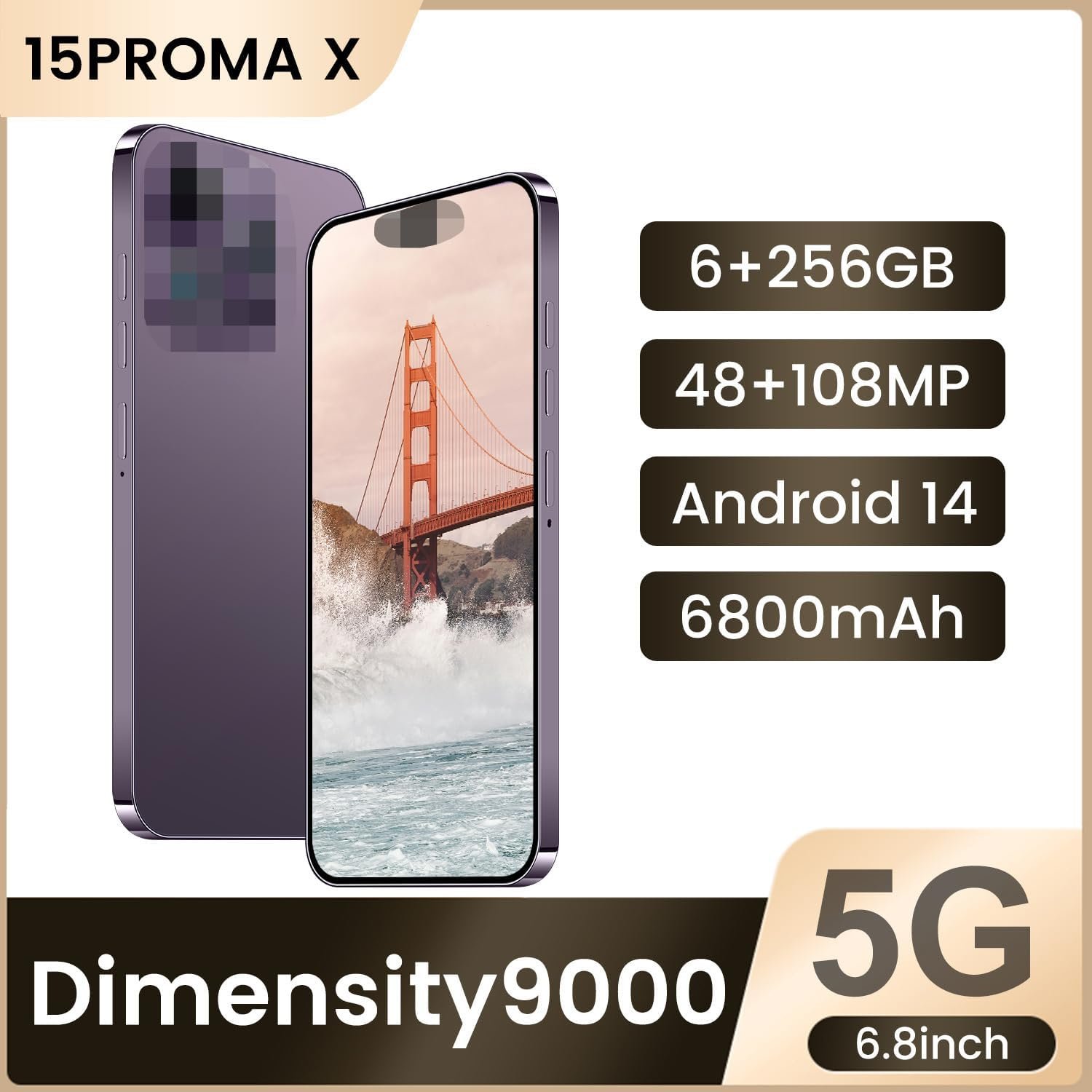 15 ProMa x Smartphone, 6+256GB Unlocked Phone, Android 13.0, 48+108MP Zoom Camera, Mobile Phone with Build-in Pen,Long Battery Life 6800mAh, Dual SIM, 6.7“ HD Screen,5G/4G (Purple)