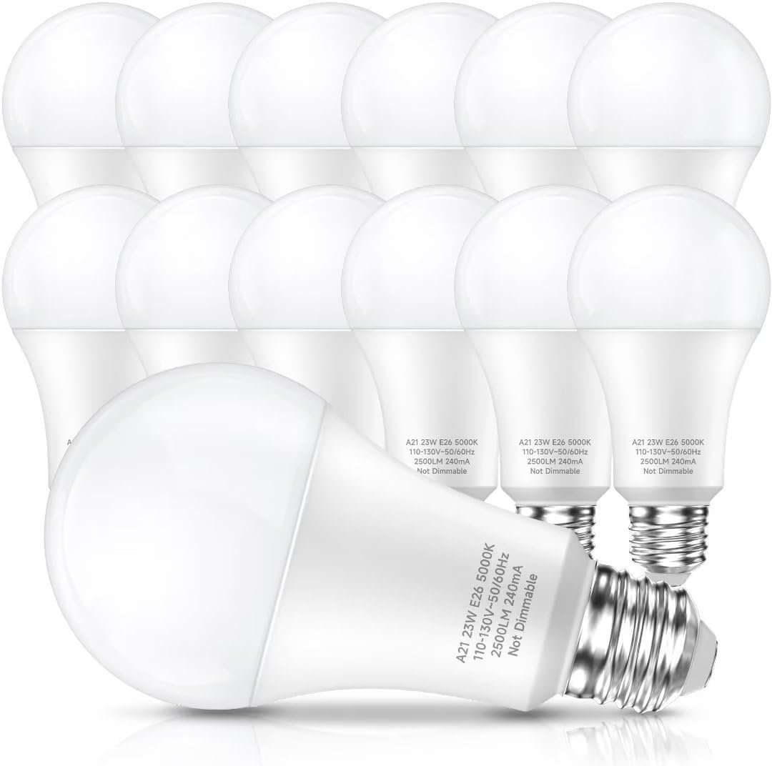 13 reviews for 150 Watt LED Light Bulbs, Daylight White 5000K, 2500 Lumens Super Bright LED Bulbs, E26 Base, A21 LED Bulbs 23W Energy Saving, Non-Dimmable Bulbs for Living Room Bedroom Garage Office, 12 Packs