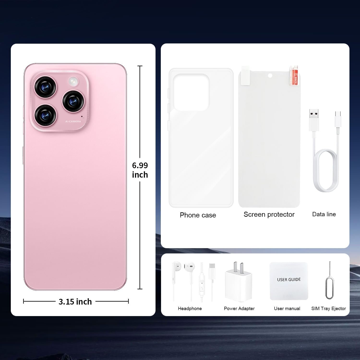 16PROMA X 5G Cell Phone,Smartphone Unlocked Cell Phone 12GB+512GB/6.99″ Display/68MP+108MP Camera/7000 mAh Battery Super Endurance, Dual SIM Card/Face Unlock/GPS (Pink)