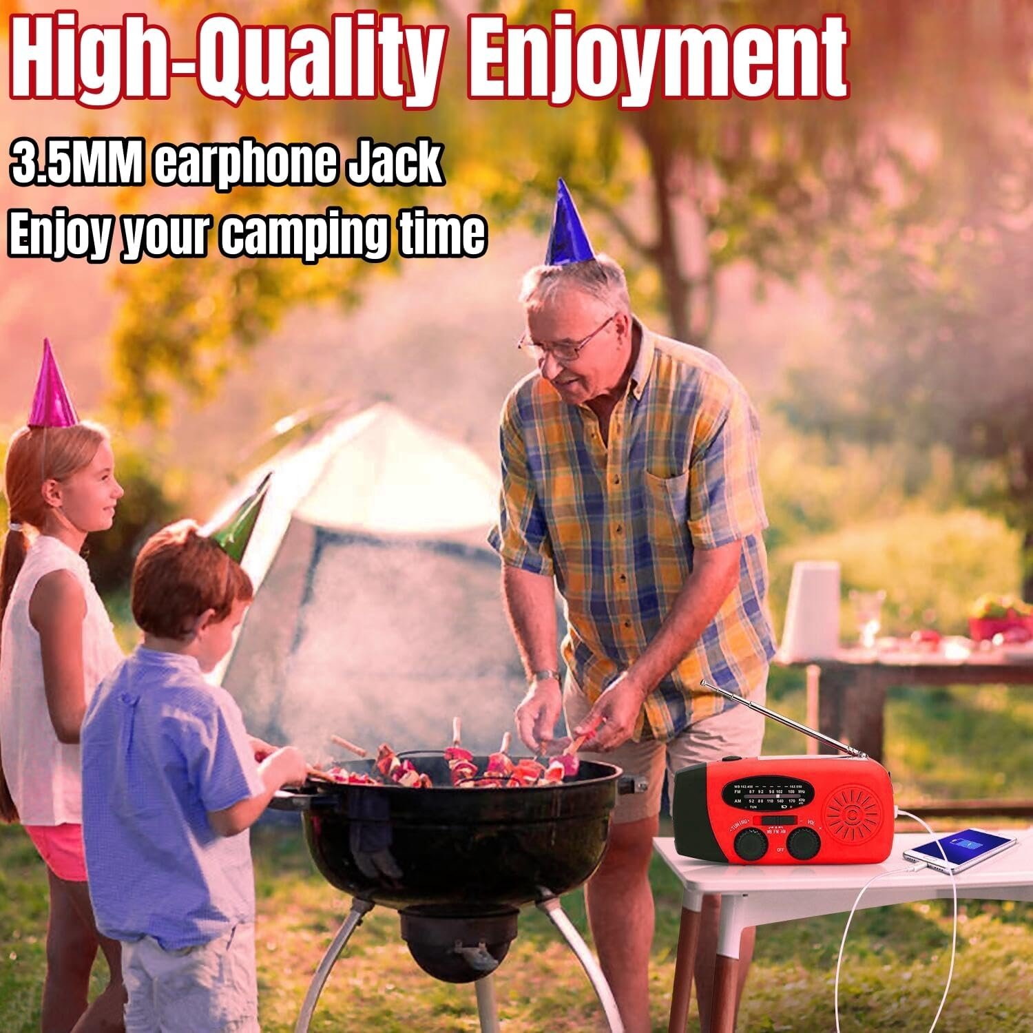 The headphone jack is designed to give you a private space to listen to what you want. You can use it in any occasion. With the IPX3 waterproof, small raindrops splashing on this wind up radio will not make damage (But please do not soak in water).