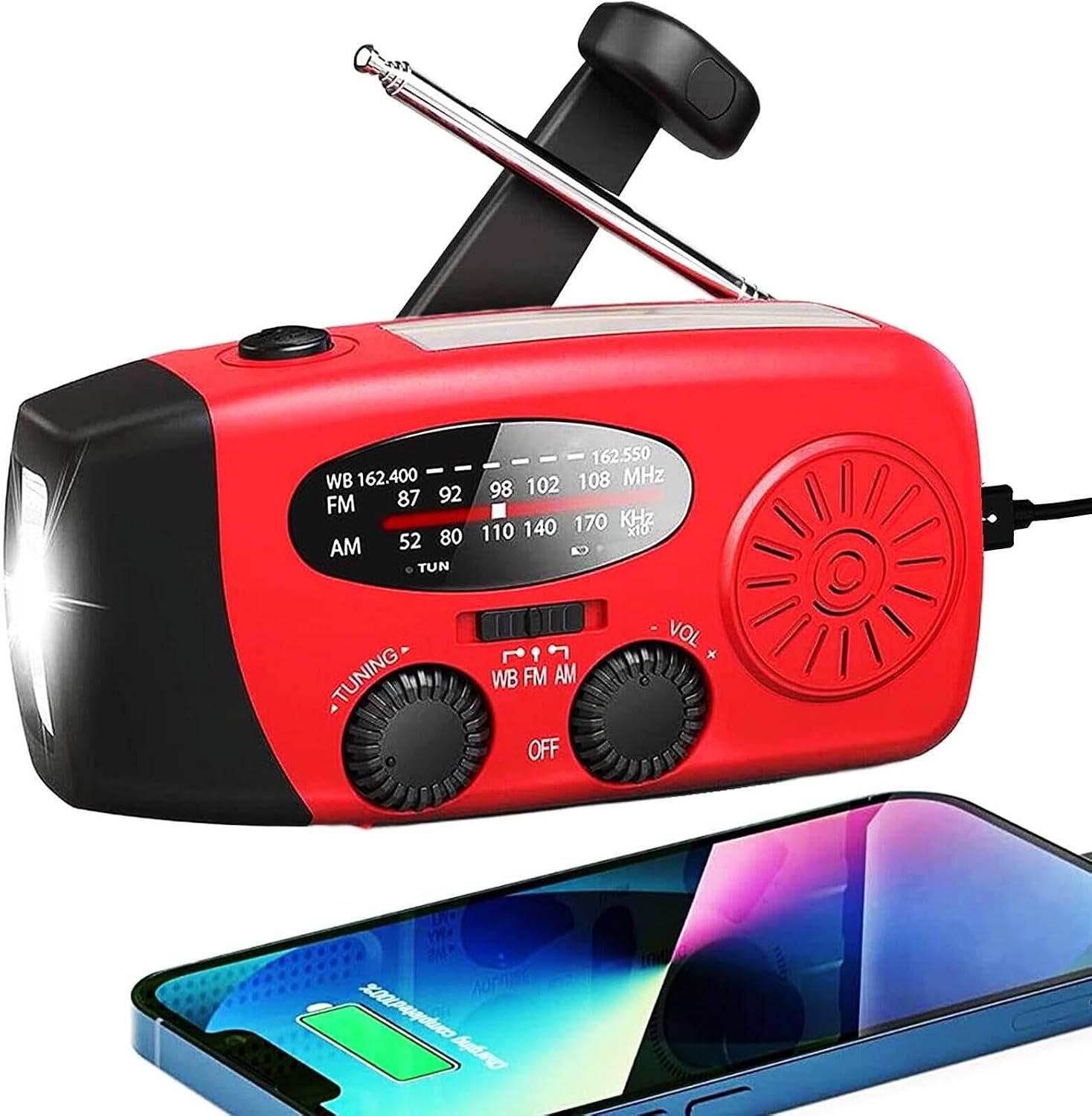 13 reviews for 18500mWh/5000mAh Hand Crank Emergency Weather Radio, AM FM NOAA Solar Radio with Led Flashlight and Earphone Jack, Charger for Smartphone, Self Powered Radios with SOS Alarm