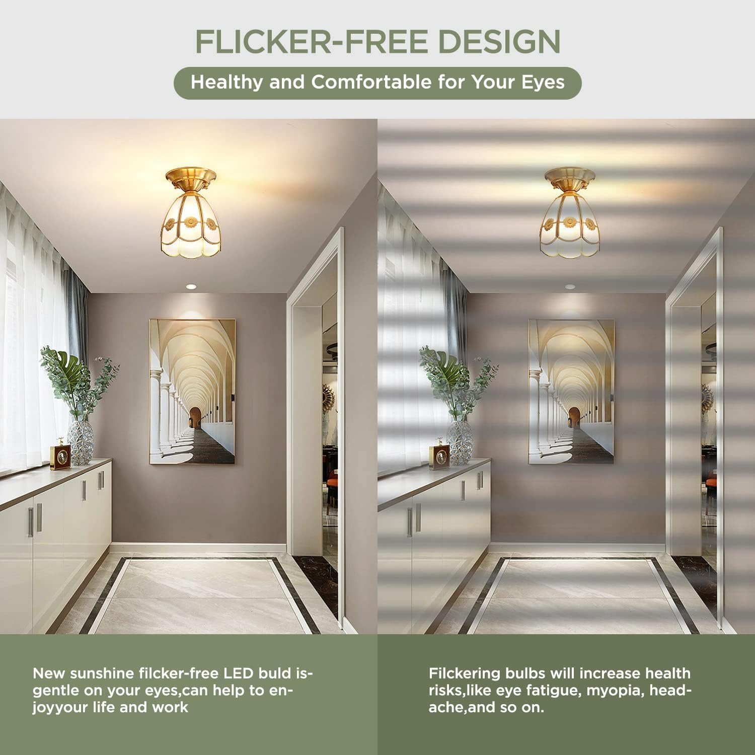 【Eye care & Eco friendly】5000K Daylight bulb No flicker, no dazzle, meanwhile very healthy to your eye. No lead or mercury, no IR radiation