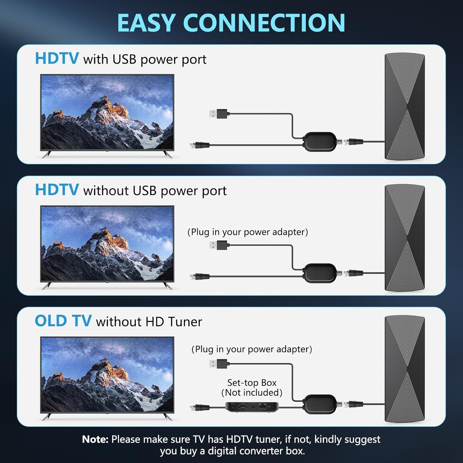 I’m absolutely thrilled with the 2025 TV Antenna! This antenna truly lives up to its promise of long-range reception, effortlessly picking up channels from over 1200 miles away. The HD digital signal is crystal clear, supporting both 4K and 1080p resolution, which has completely transformed my TV viewing experience. The 33ft length makes it easy to position for optimal reception, and the built-in signal booster ensures that even the most distant channels come in strong. Whether you’re using a smart TV or an older model, this antenna is versatile and reliable. It’s easy to set up and has quickly become an essential part of my home entertainment system. Highly recommended for anyone wanting to ditch cable without sacrificing quality!