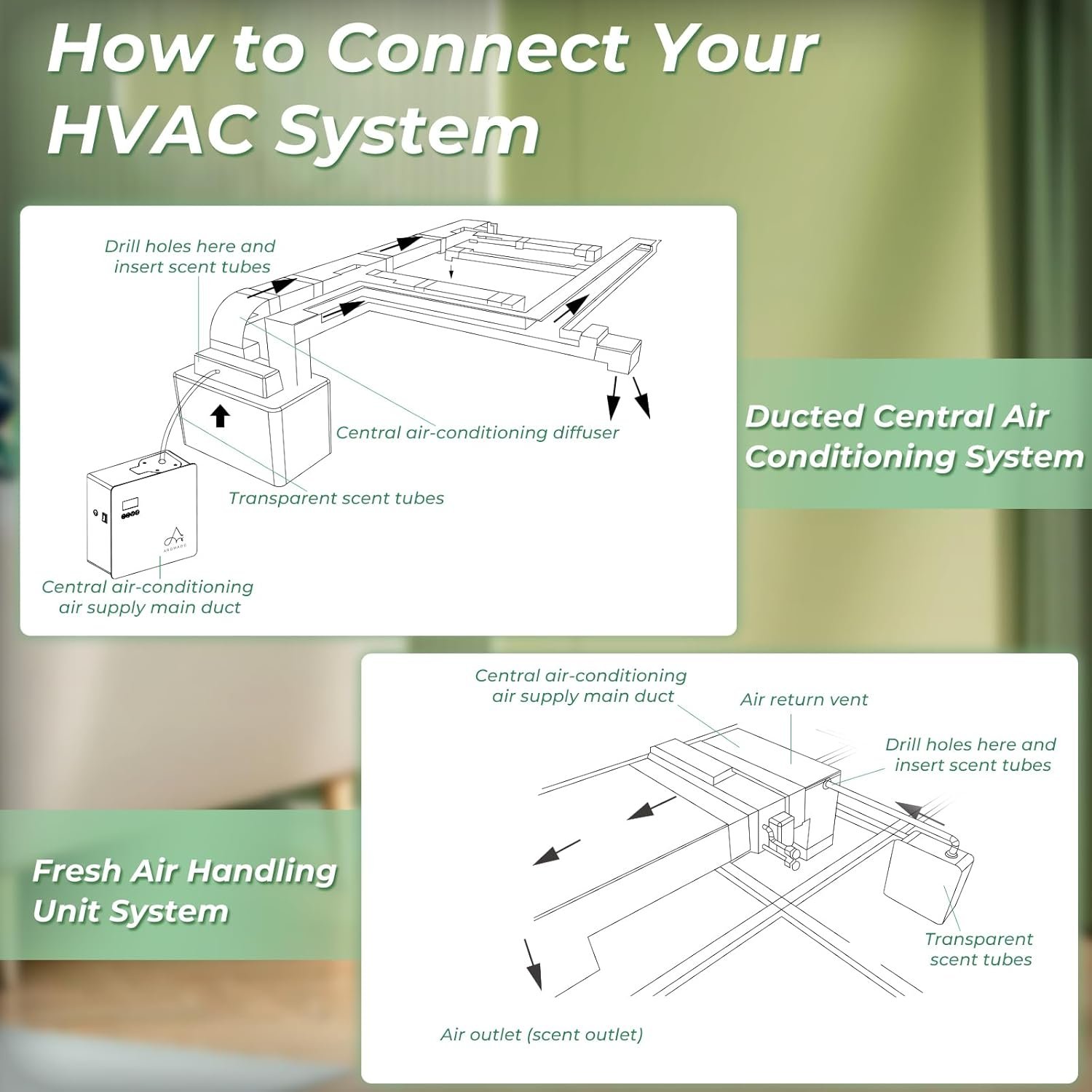 MESS FREE & NOISE FREE: The Aromadd essential oil diffuser is designed to leave no mess or residue in your room, unlike other cheap household scent diffusers. It features a silent atomizer that allows you to relax without any noise disruption. The Aromadd diffuser can be easily installed on any wall or floor, and its unique design allows for seamless connection with your HVAC system