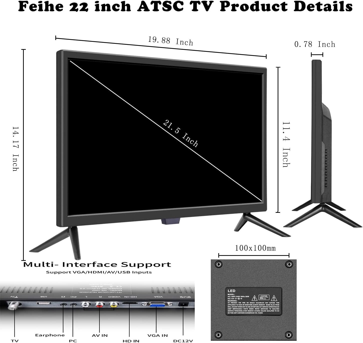 📺Multiple Ports for LED TV: 22 inch TV(NOT SMART TV) comes with a lot of compatibility features including: Built in USB Interface,(ATSC) RF In, 12V DC Power Supply, AV,VGA and HDMI Inputs, Headphone Jack.HDMI、VGA and USB inputs are connected with external audio and video playback. AV input is there to use with DVD players or Game Systems. Built in speaker for party while Headphone Jack is for private viewing, in addition, ATSC Tuner and Remote Control make this a potential move TV.
