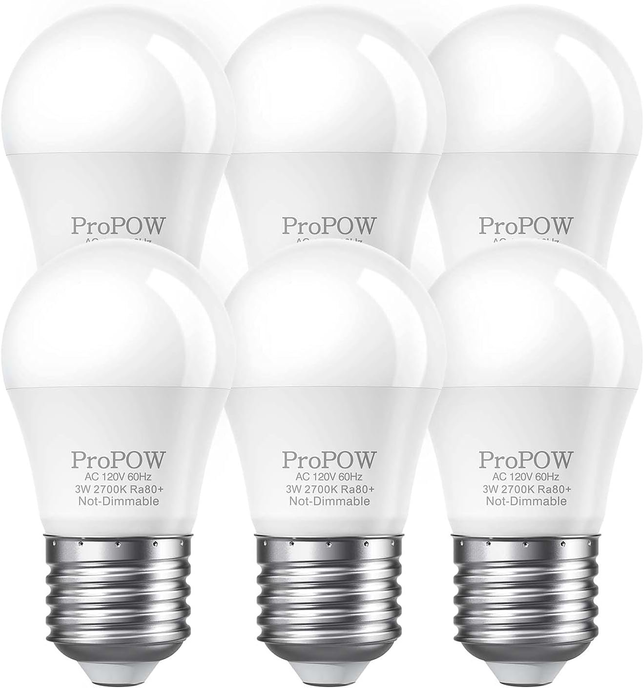 ProPOW Soft White 2700K 3W A15 LED Bulbs 25 Watt Equivalent Energy Saving Light Bulb, 6-Pack