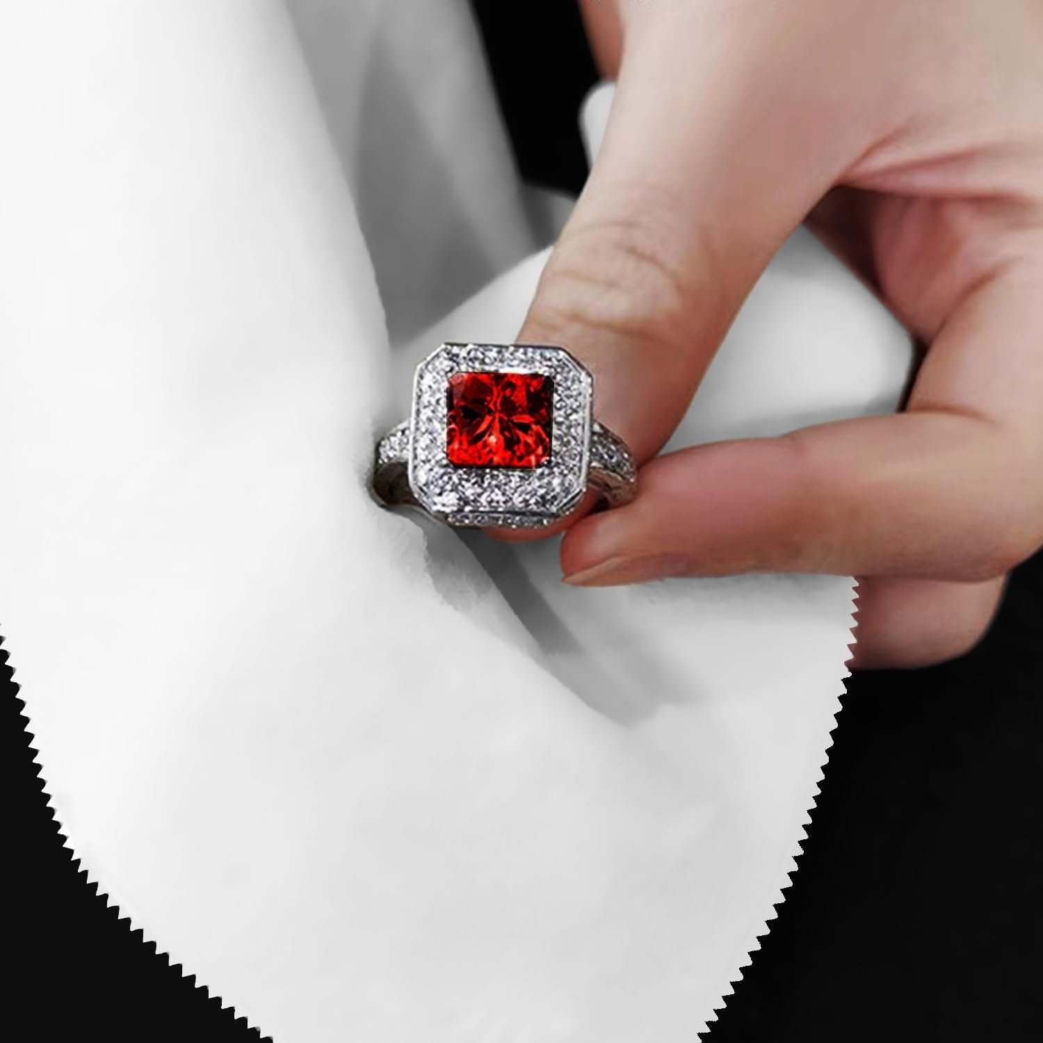 Restores shine to metals and gemstones, lifting tarnish and oils. Hypoallergenic fibers gently clean delicate settings. Compact for jewelry boxes or travel.