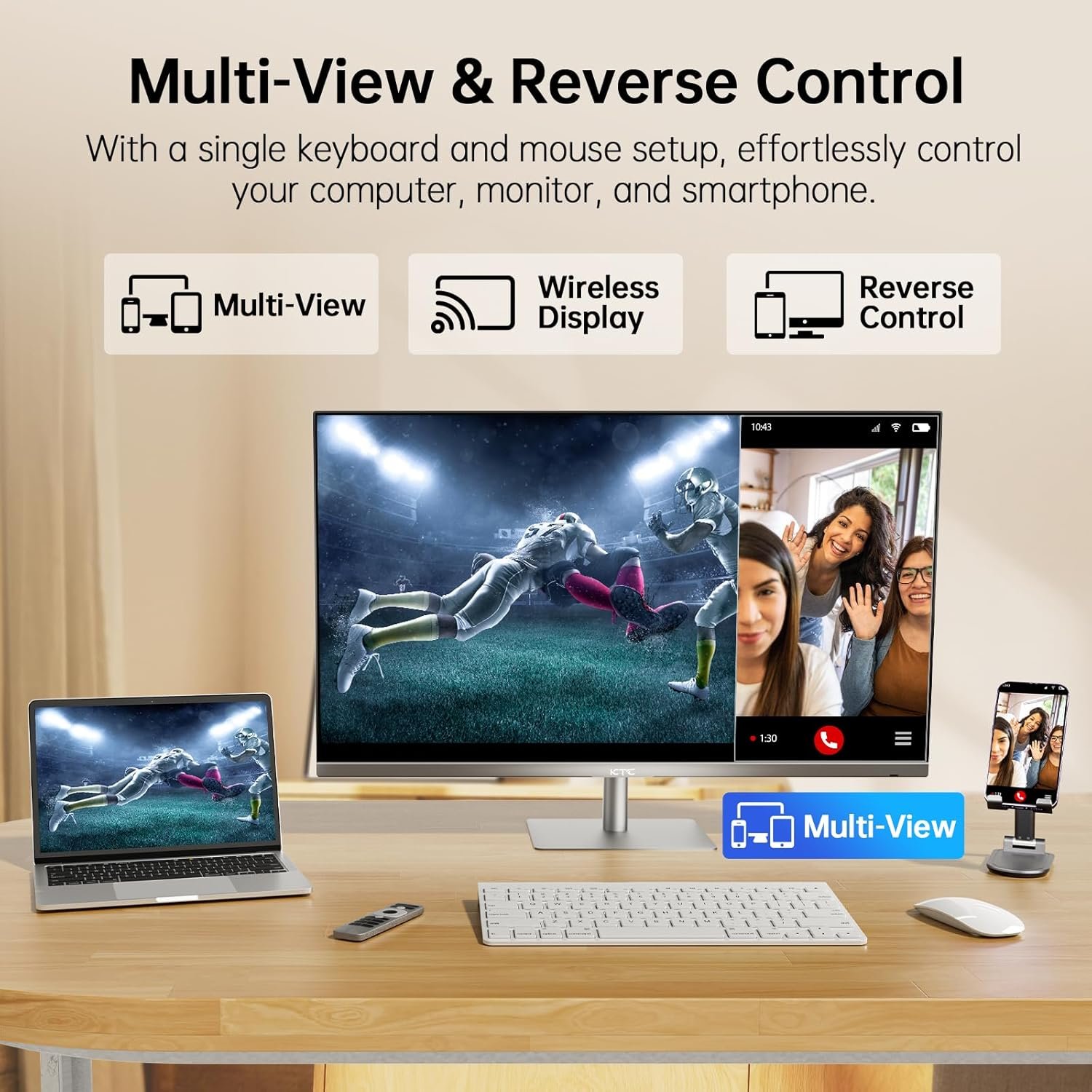 [Versatile Connectivity Options] This impressive 32-inch smart monitor is equipped with a variety of versatile connectivity options, including WiFi, Bluetooth, HDMI 2.1, Display1.4, USB 2.0 and a powerful 65W PD Type C fast charger. These features make it simple and efficient to connect all your devices, ensuring that you remain productive. Additionally, the KVM technology further enhances multitasking capabilities, allowing you to switch seamlessly between different devices with ease, streamlining your workflow.