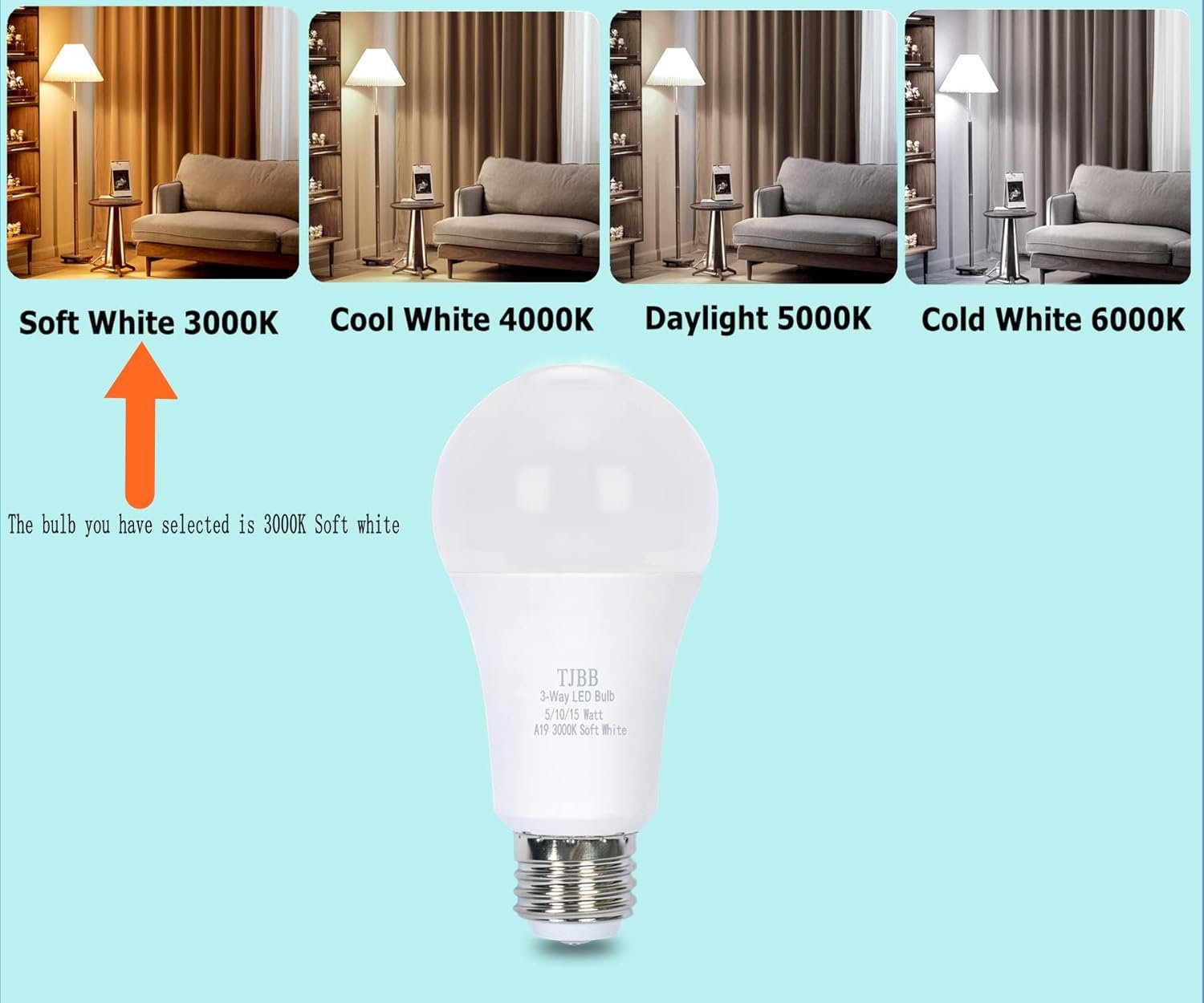 11 reviews for 4 Pack 3 Way LED Light Bulbs 50 100 150Watt Soft White 3000K Equivalent, 5/10/15W Three Way Light Bulbs A19 E26 Base, 700 1400 2100 Lumens