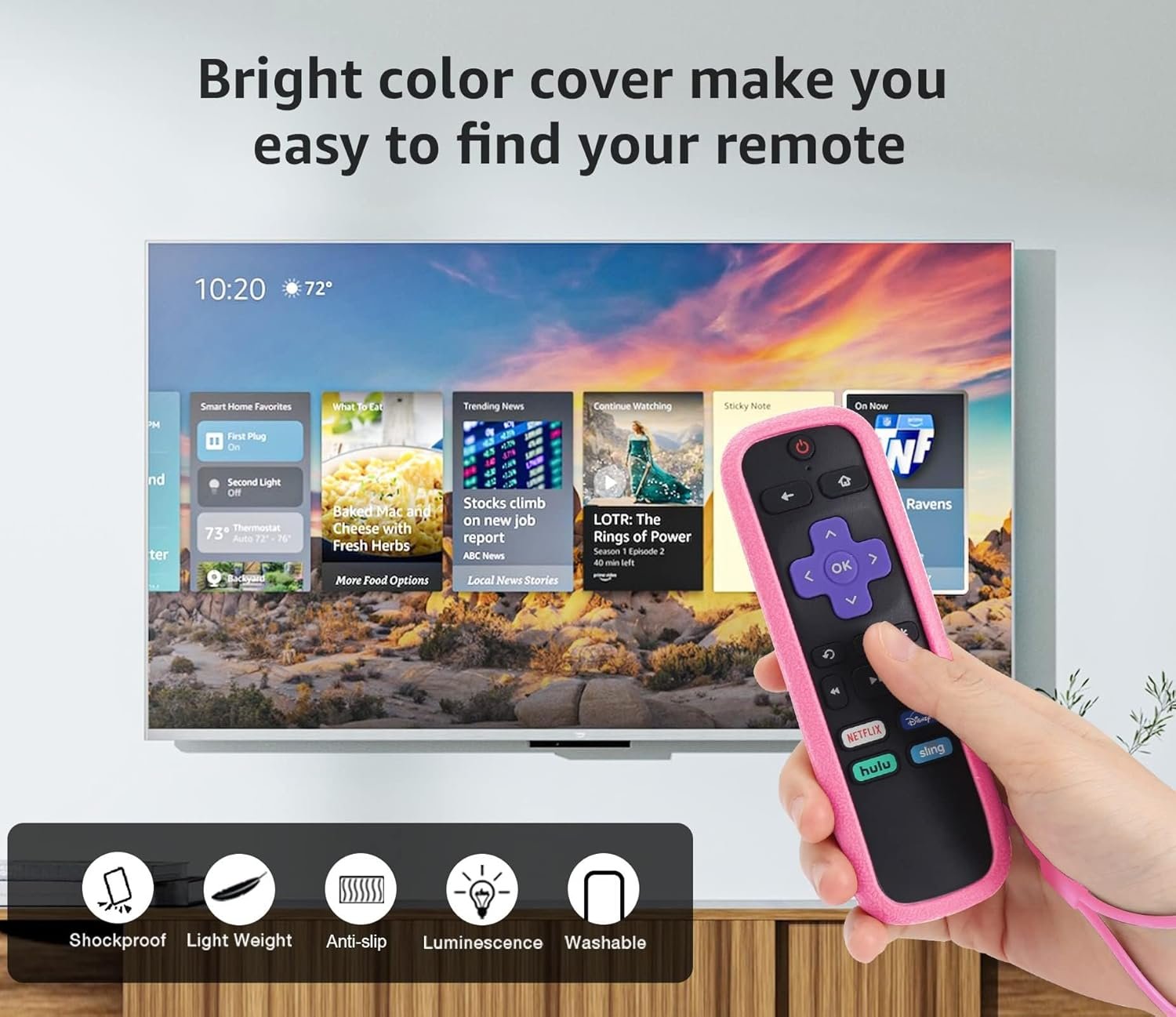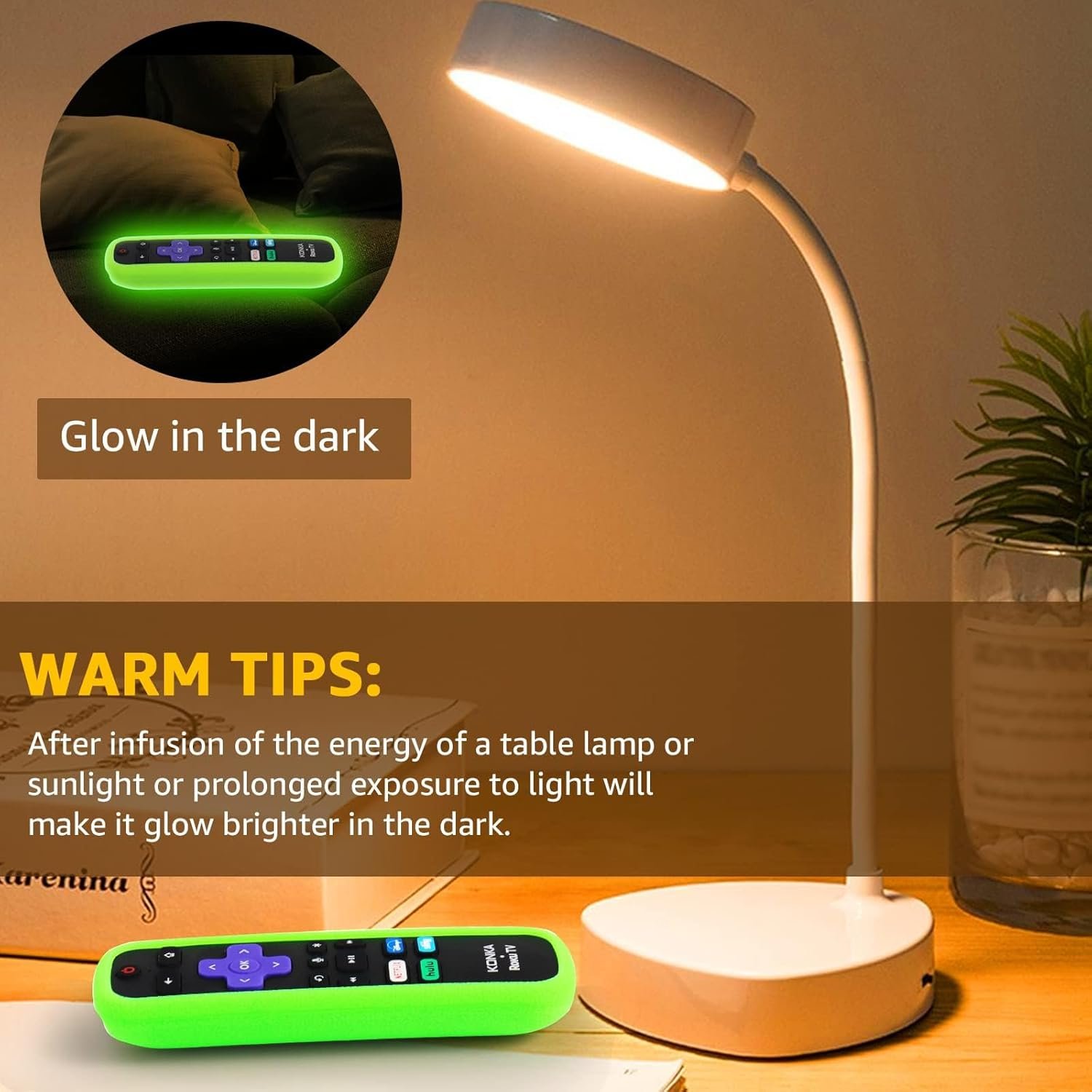 Easy to Find Your Roku Remote: Getting this bright and fun color remote cover for Roku lets you easy to find your remote and save time. For best results, please expose the case to strong light for an extended period before using it. This will make it glow brighter in the dark. Each roku remote cover comes with the same color wrist strap.