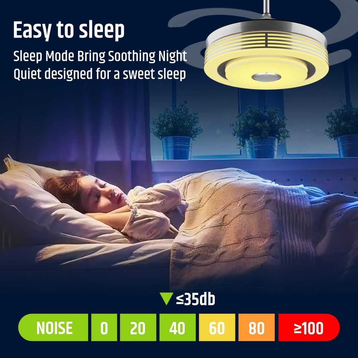 【Quiet reversible ceiling fan】Retractable blade ceiling fan uses high quality pure copper coil motor for stable operation and low noise design without affecting the sound of music. Can be set to run forward (for summer cooling) or reverse (for winter ventilation)