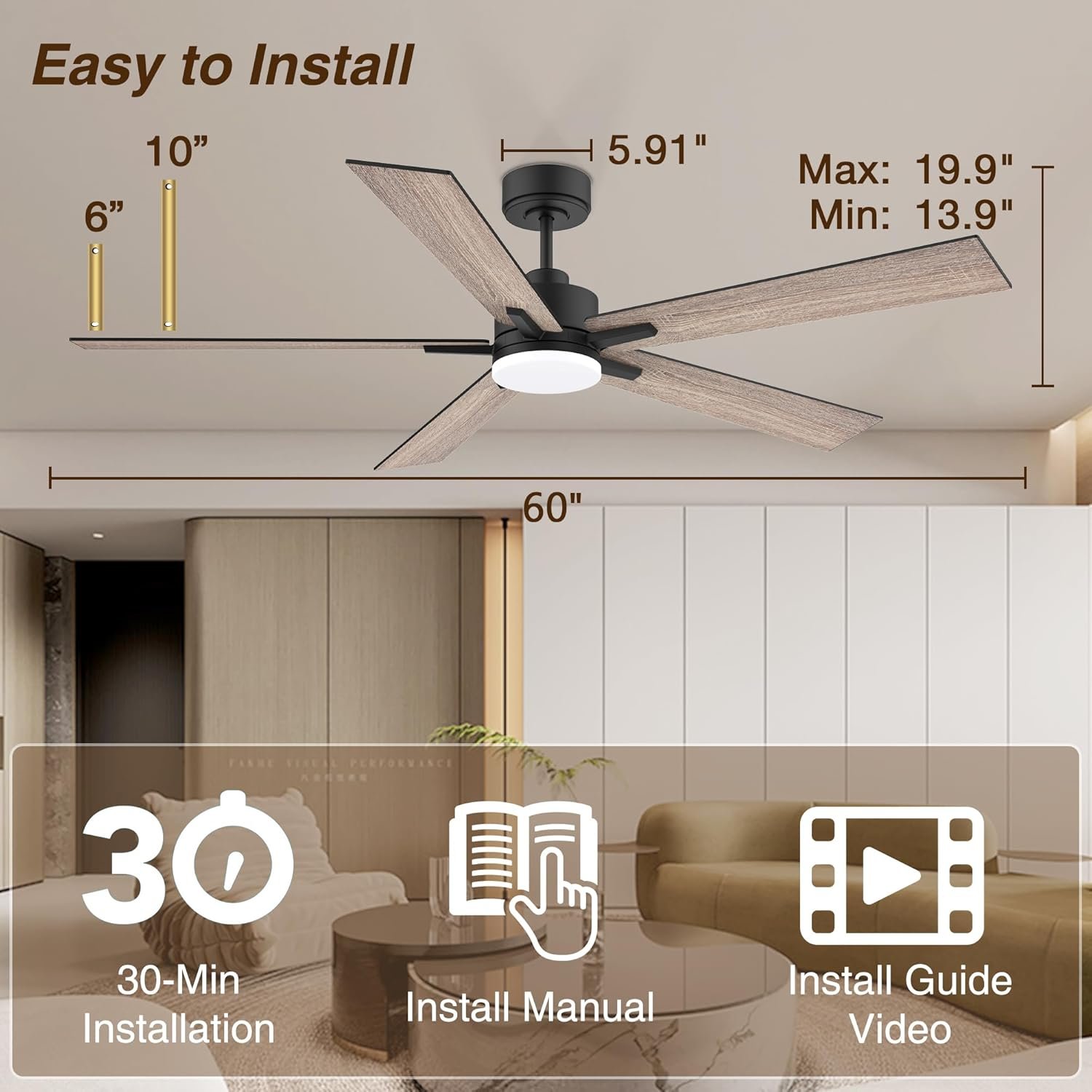 8 reviews for 60 Inch Smart Ceiling Fan with Lights Remote,Control via Alexa Google Voice App WiFi,Quiet DC Motor,Dimmable,Outdoor Indoor Modern Ceiling Fans for Large Bedroom Patio Porch,Brown Black Walnut
