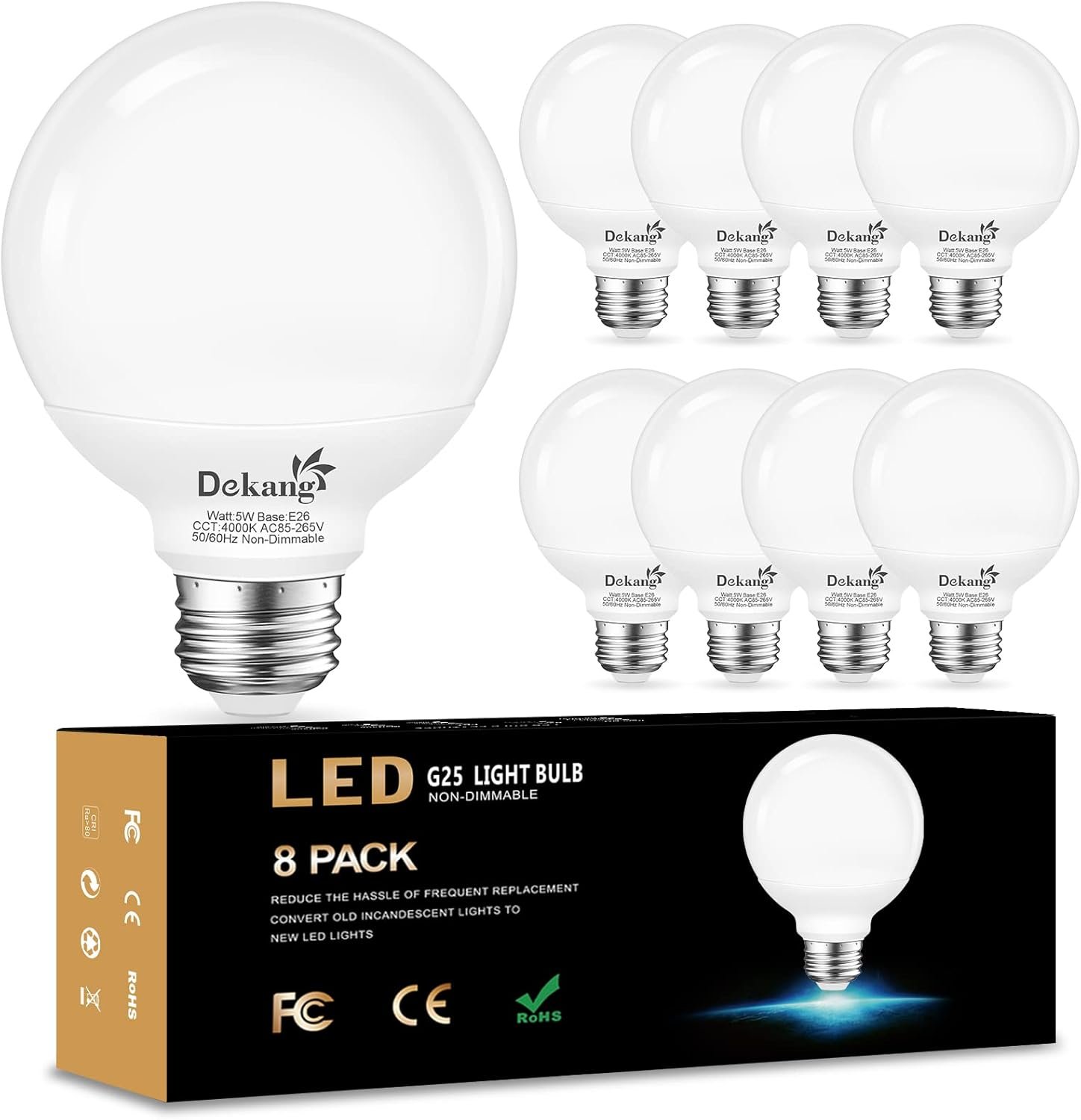 8 reviews for 8-Pack LED Vanity Light Bulbs for Bathroom 4000K Natural Daylight, E26 Base Globe 60W Incandescent Equivalent, 5W Round Light Bulbs for Vanity Mirror, 500LM, Non-dimmable