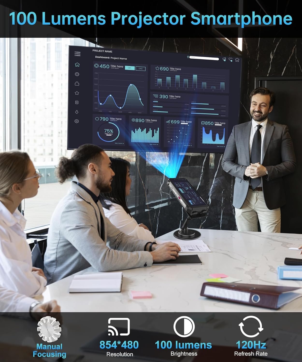 【100 Lumens Projector Phone】Enjoy clear and vivid images on the go with the built-in projector featuring 100 lumens brightness, 120Hz projection refresh rate and manual focusing. You can project movies, presentations, or anything else you need onto a large screen by the tank 2 Pro rugged smartphone. No need for extra equipment or worrying about the projection site; Not only suitable for daily use, but also suitable for business use