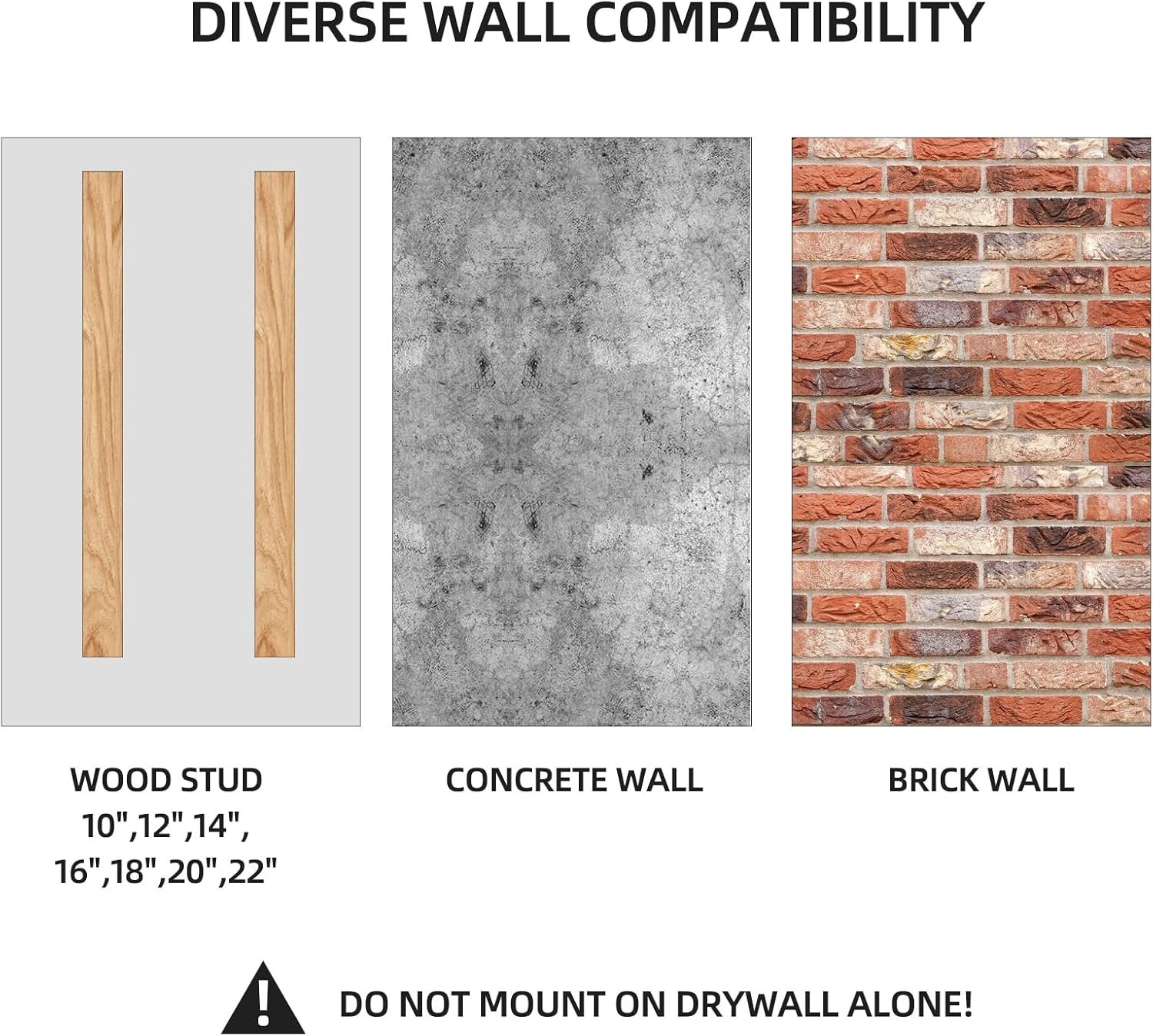 【Easy to install】: For 12, 16, 18 inch wood stud walls.TV wall mounts with clear instruction and hardware in pre-labeled bags. +/-3° post-installation adjustment allows TV leveling after installation.A detailed installation video can also be found on the main picture and detail page. Mounts to the wall in just a few steps.Do not install on drywall alone!