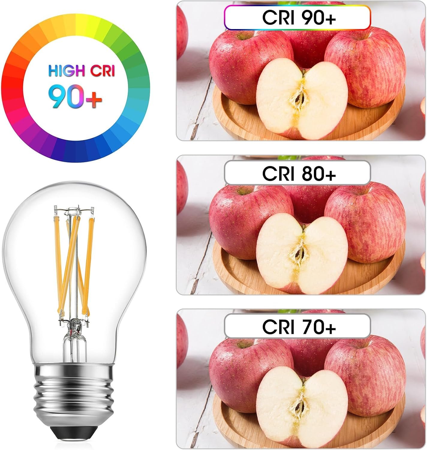 The stylish A15 design features vertical filament strips encased in clear glass, perfect for enhancing decorative lighting fixtures and elevating the aesthetic of living rooms, cafes, restaurants, or commercial spaces. With an exceptional 90+ Color Rendering Index (CRI), these bulbs render skin tones naturally and colors vibrantly—all while consuming less energy and lasting 25,000+ hours.