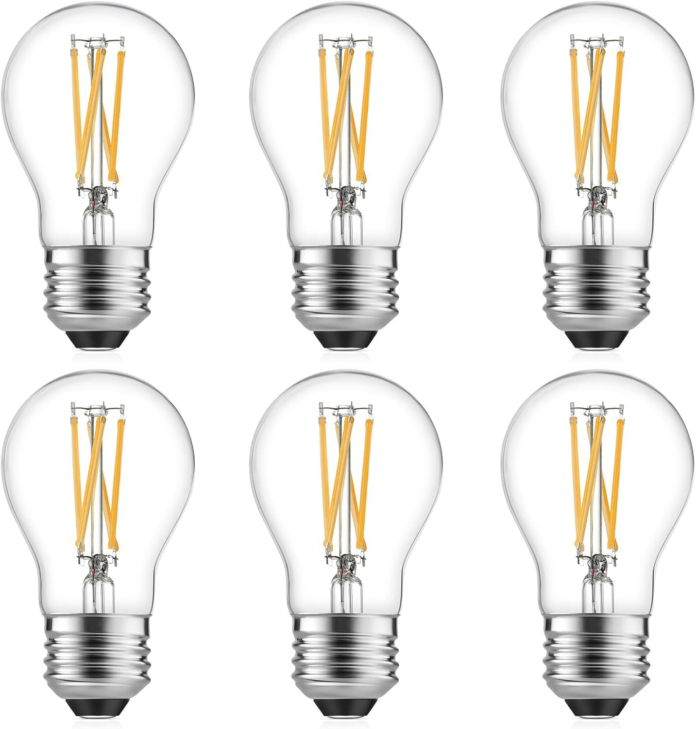 A15 LED Bulbs – Vintage Edison Bulbs, Dimmable, Clear Glass, E26 Medium Base, 6W (60W Equivalent), 2700K Warm White, 700LM, for Ceiling Fans, Appliances, Refrigerator Lights – 6 Pack