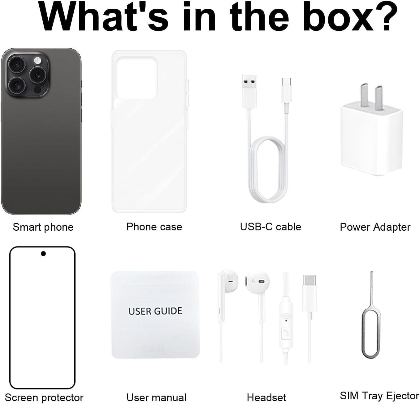 Vibration:SupportMemory:8GB RAM+256GB ROMMulti Media:MP3/MP4/3GP/FM Radio/BluetoothCamera:48MP+108MPMulti Function:Full HD screen,Face recognition,Dual SIM,Wi-Fi, FM,Bluetooth4.0,Gravity Sensor, Alarm,Calendar,Calculator,Audio recorder,Video recorder, WAP/MMS/GPRS,Image viewer,E-Book,World clock,Tasks cardPower Adapter, Earphone, Phone Case, cell phone, Screen Protector, USB Cable, Clip pin, IMEILanguages:Muti-language supportOthers:Android 14Battery:6800mAh Lithium-ion battery