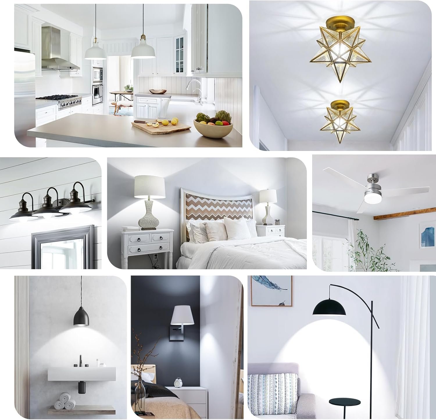 Easy Installation & Wide Application: Featuring a standard A19 shape with an E26 medium base, our 12 packs light bulbs fit effortlessly into any standard fixture. Perfect for ceiling lights, table lamps, floor lamps, pendant lights, and wall sconce, these bulbs are ideal for every room in your home, widely used in living room, kitchen, bedroom, bathroom, hallway, entryway, dining room, laundry room, garden, garage, porch, patio, front porch lighting, office, and hotel