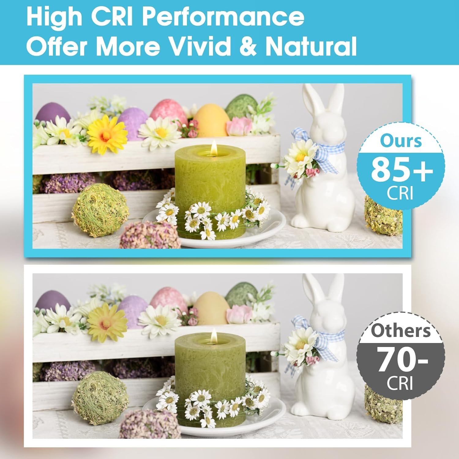 Super Bright & High CR: Harnessing the latest LED technology, our 60W equivalent LED bulbs emit a brilliant 900 lumens with a stable 5000K daylight glow. With a high CRI of 85+ and a 220-degree wide beam angle, these bright white light bulbs deliver vivid, natural colors, making them ideal for commercial spaces or any area that demands bright, true-to-life lighting.
