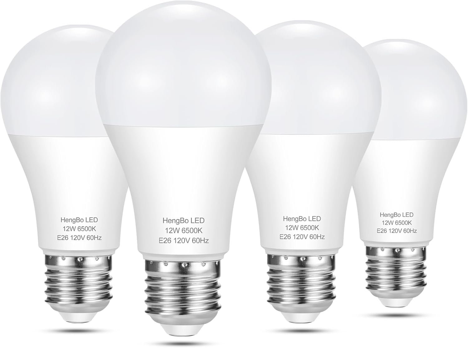 8 reviews for A19 LED Light Bulbs 100 Watt Equivalent, HengBo 6500K Daylight White Light Bulb, 12W 1200 Lumens, Non-Dimmable, E26 Standard Medium Base Super Bright Lamp for Bathroom Home Lighting (Pack of 4)