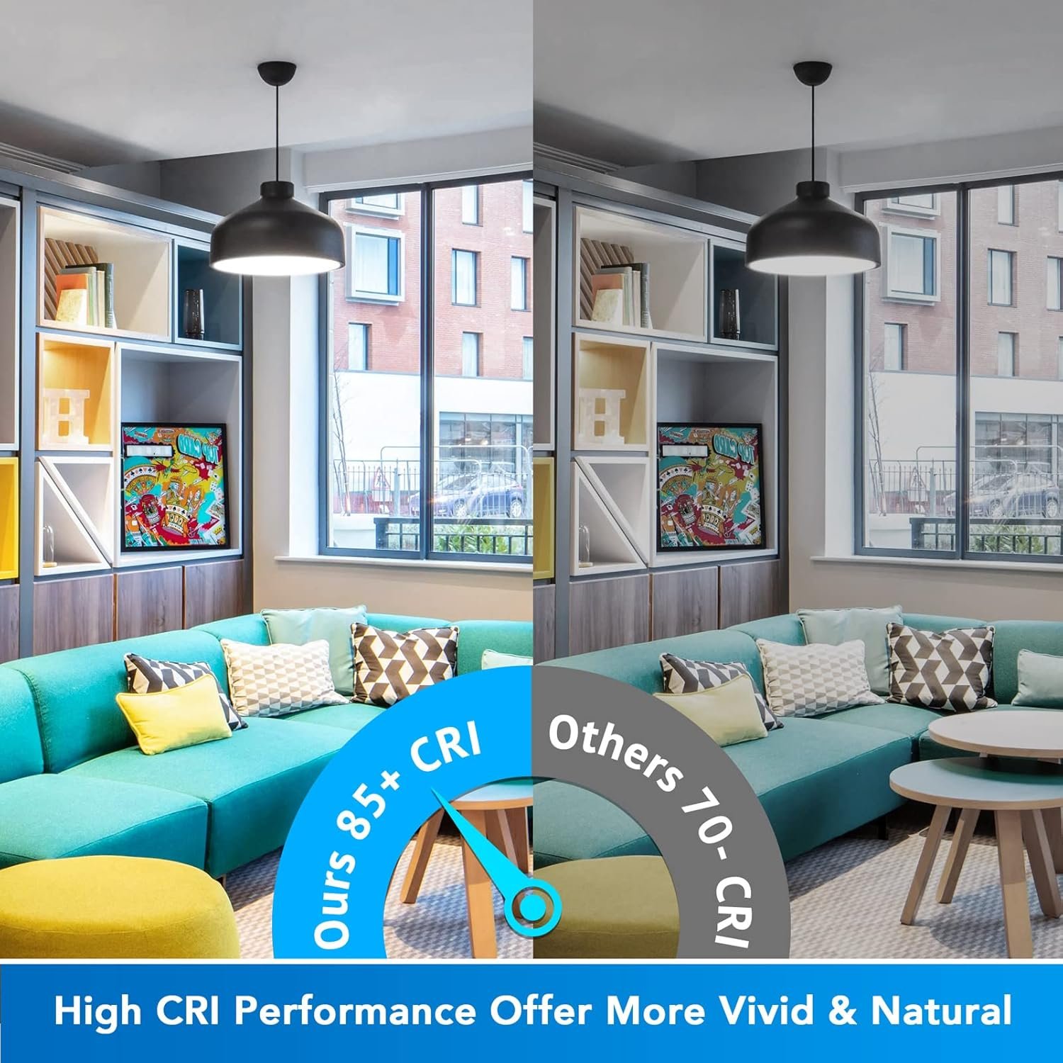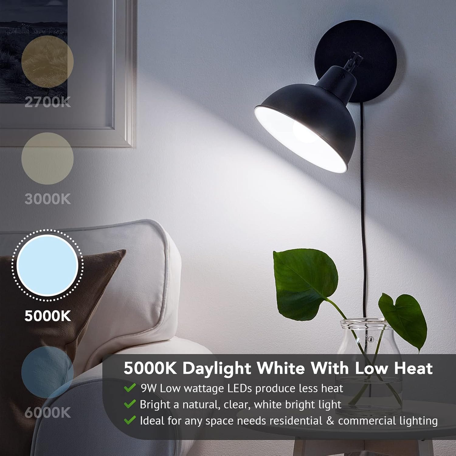 Super Bright & High CRI: Build-in the latest LED technology, the led 60w equivalent light bulb to give off a full 850 lumens of brightness and a stable 5000k daylight glow. Features with more than 85+ CRI and a wide beam angle of 220 degrees, the bright white light bulbs provide you with vivid and natural color performance, ideal for commercial lights or any space that needs bright home lighting.