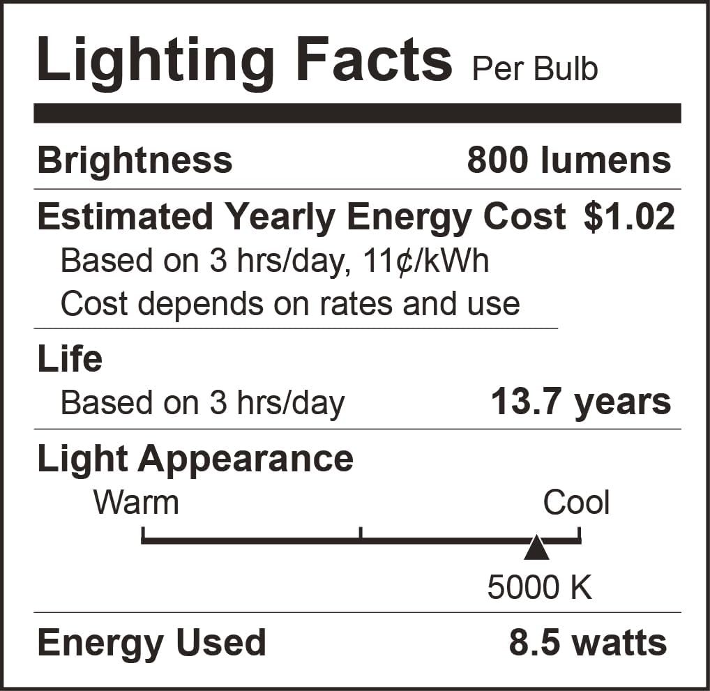 8 reviews for A19 LED Light Bulbs, 60 Watt Equivalent LED Bulbs, Daylight 5000K, 800 Lumens, E26 Standard Base, Non-Dimmable, 8.5W Warm White LED Bulbs for Bedroom Living Room,3 Pack