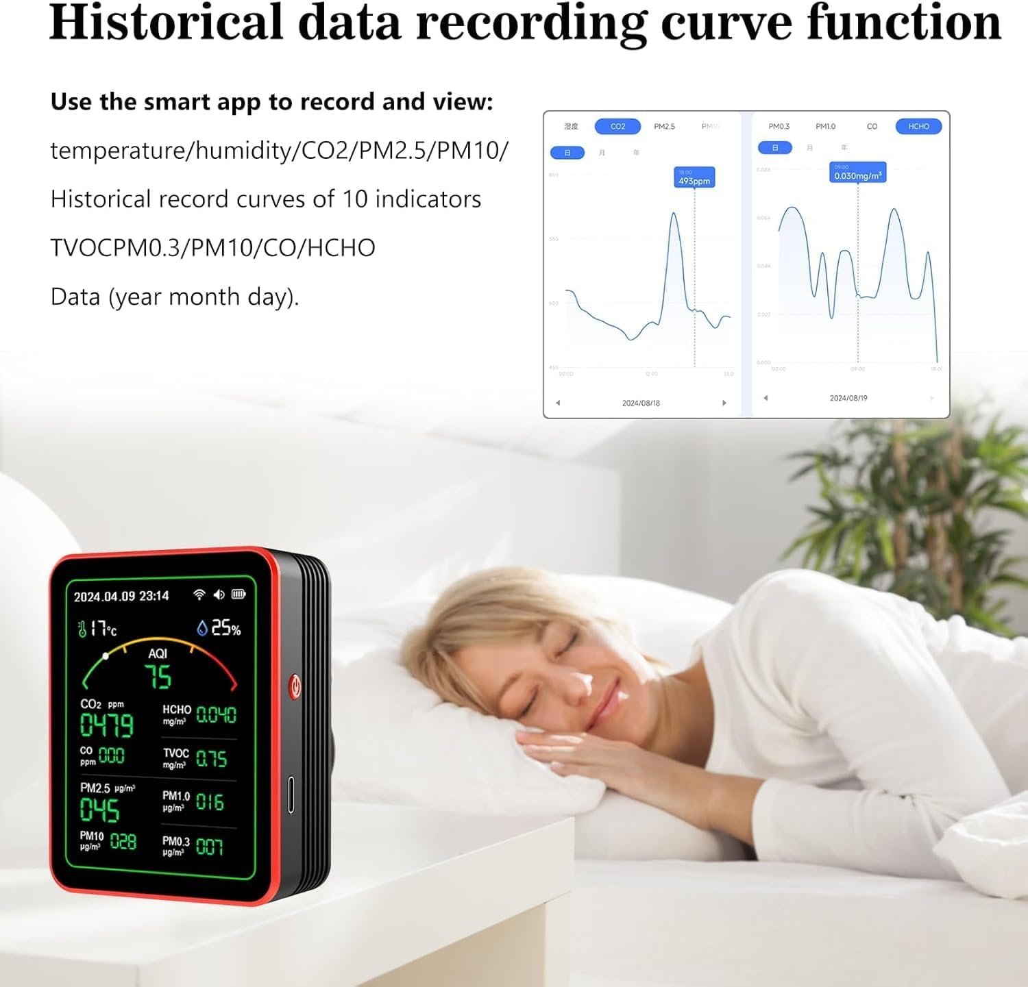Air Quality Monitor is easy and fun to use. You can move it between rooms in your house, take it to hotels during business trips, or monitor the air quality in classrooms, conference rooms, museums, parties, concerts, and so many other places. Bring Air Quality Monitor with you wherever you go!Real-time tracking:Monitor your spaces in real time to discover how air quality varies between rooms and identify sources of pollution.In dry seasons that are prone to fire and winters when doors and windows need to be closed, we need to pay more attention to the concentration of indoor carbon dioxide in real-time.Protecting the health of you and your family:Especially for pregnant women, children, the elderly, the chronically ill and other sensitive groups, it is very important to understand the air quality data in order to solve the problem in a timely and effective manner, so that every breath is fresh and healthy.