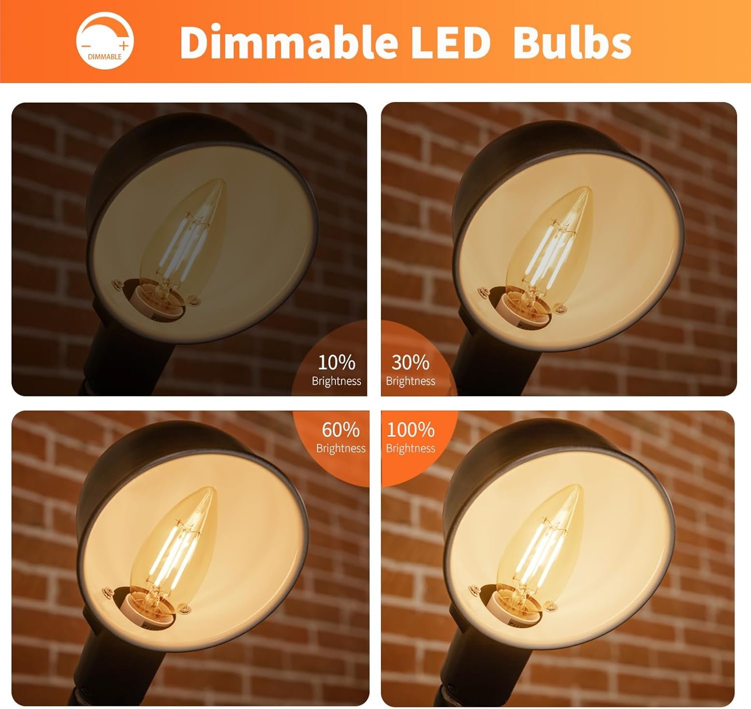 Dimmable: ALAMPEVER E26 light bulb can be dimmed from 10% to 100% on demand. Adjust the brightness of the B11 LED bulb, thereby affecting the indoor light, can set off a different indoor environment atmosphere