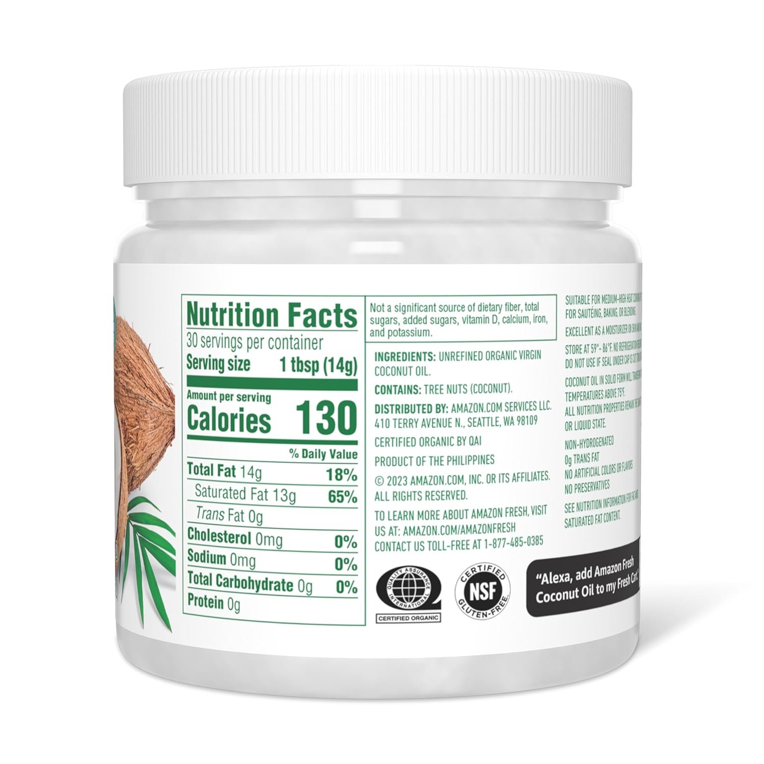 Amazon Fresh, Organic Virgin Coconut Oil, 15 Fl Oz (Previously Happy Belly, Packaging May Vary)