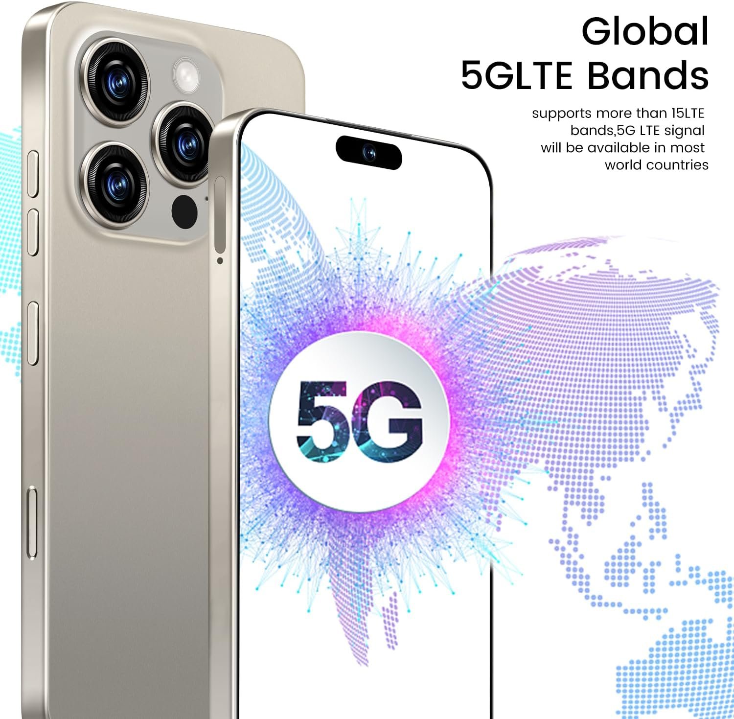 【Dual SIM and Global Band 5G Phone】Dual SIM & 3 Card Slots, I16 ProMAX Smartphone adopts 2+1 card slot design, supports two 5G SIM cards, you can use the second number without carrying an extra mobile phone. Excellent transmission speed allows you to freely explore the online world.