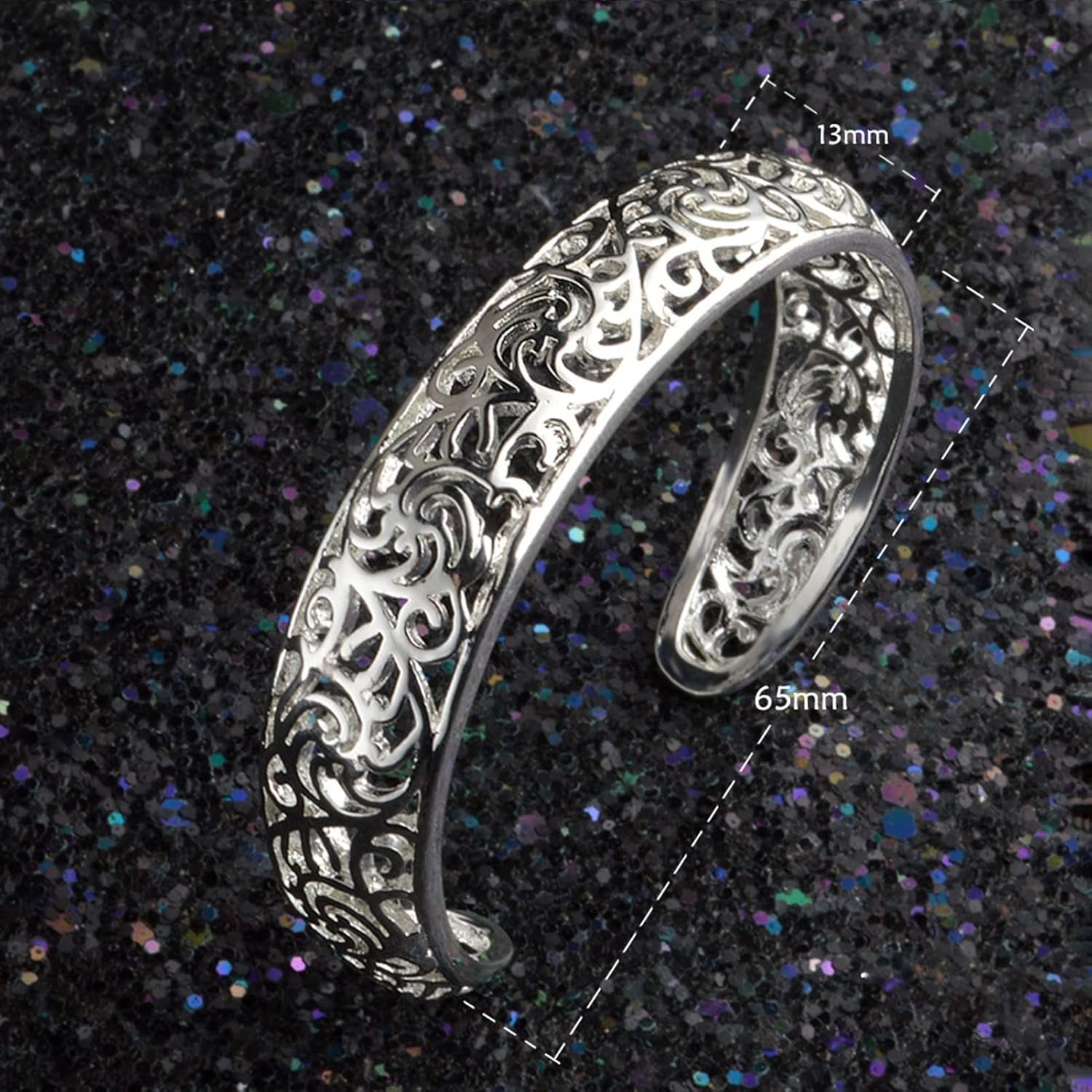 Women Bracelets, Cuff Bracelet Opening Exquisite Craftsmanship Hollow Silver Color Carved Pattern Retro Bangle Jewelry Women Bangle for Banquet